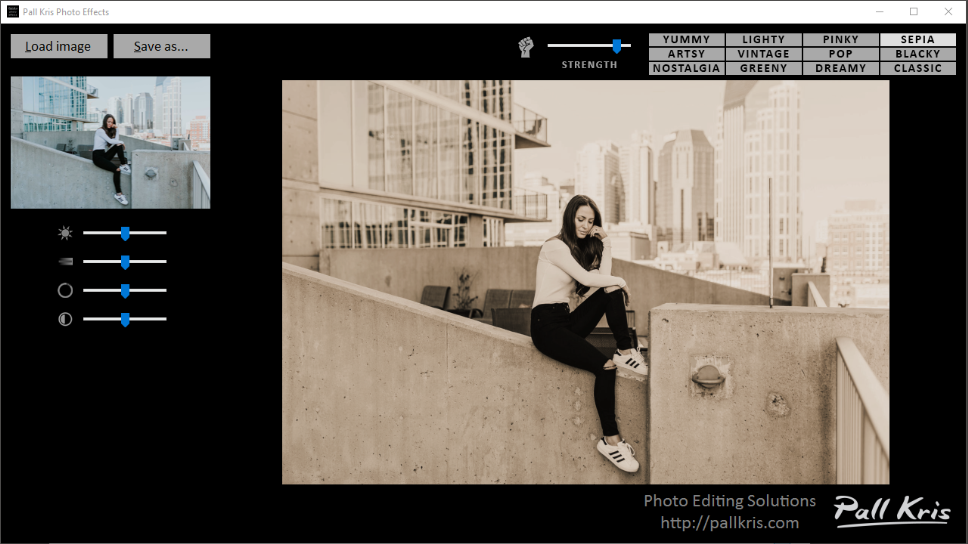 Pinky: The dark areas from the photo become a dark pink and the rest more like a desaturated red. Pink is such a powerful color and I love it. In general when we think of pink color, that over saturated bright pink pops in our minds, but there is so much more to it. There are many fine artists who created entire artwork series using pink as the main color. One name that comes to mind is Andreas Golder. Don't like pink? No problem at all, just use the hue slider and make your own filter.